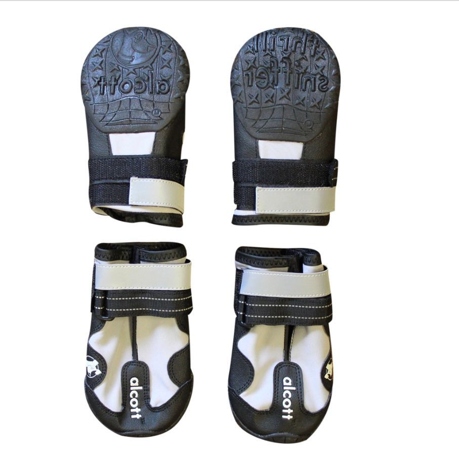 Mit den robusten Abenteuer Stiefeln geht Ihr bester Freund über Stock und Stein. Starke Gummisohlen sorgen für Halt und reflektierende Akzente bieten zusätzliche Sicherheit, wenn das Abenteuer einmal länger dauert. Und mit dem in der Sohle eingelassene Alcott-Logo und den Worten "thrill sniffer" wird Ihr Hund mit Sicherheit einen bleibenden Abdruck hinterlassen!