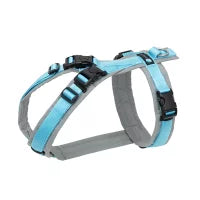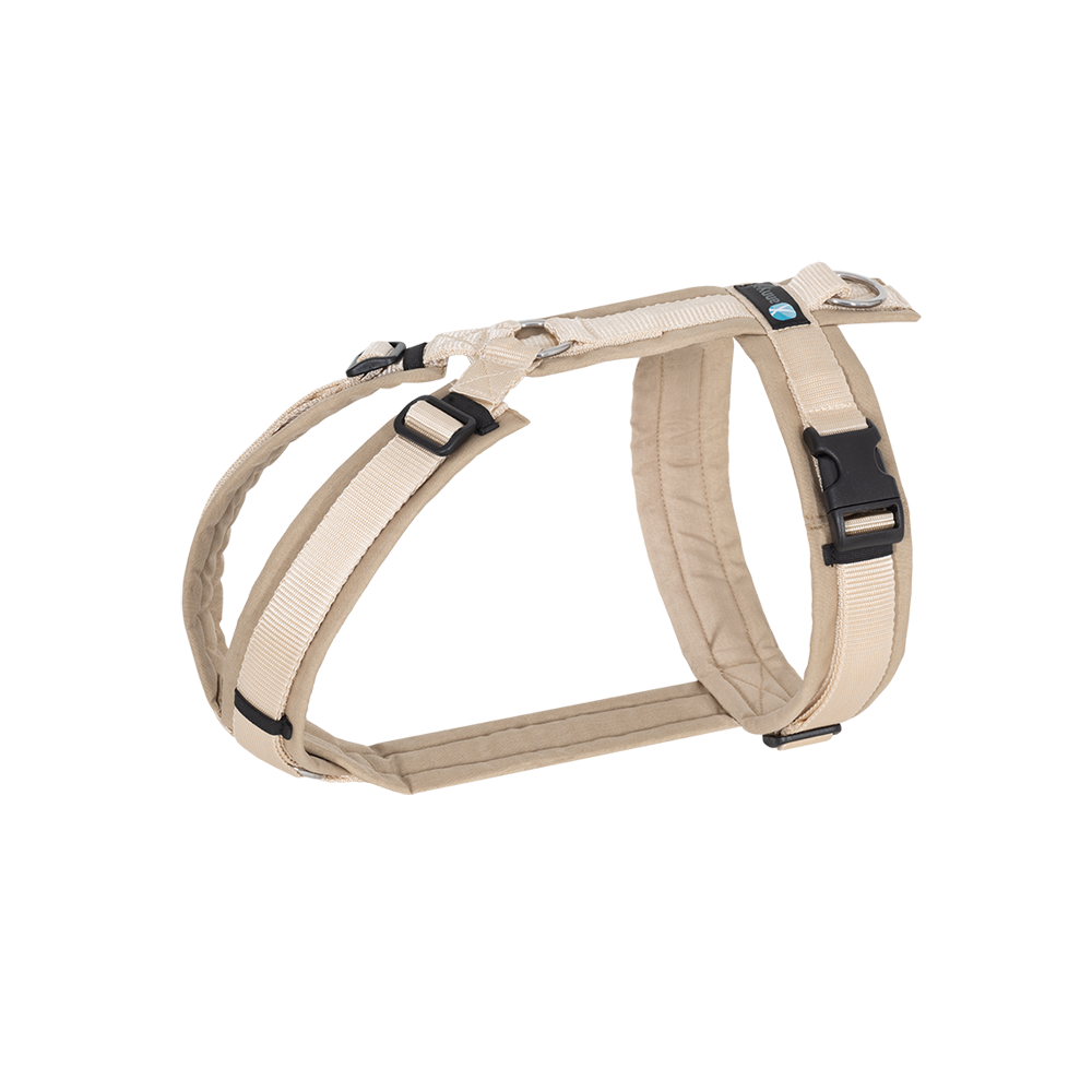 Die umlaufenden Gurte im Brustbereich bilden dank des langen Unterbruststegs einen bewegungsfreundlichen Abstand zu den Vorderbeinen, so dass die Achseln geschont werden. Das Gurtband ist in der kleinsten Einstellung komplett mit luftdurchlässigen Schaumstoff gepolstert und dieser wiederum ist mit Cordura (hoch abriebfestes Material) eingefasst.