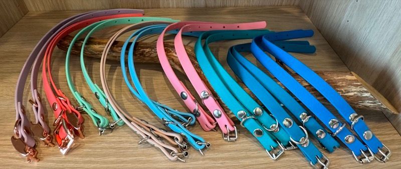 Unser Warensortiment an Biothane Halsbändern umfasst viele Farben, Längen und Ausführungen. Sie können zwischen verschiedenen Schnallen und Verschlüssen wählen und auch die allgemeine Größe des Halsbandes selbstständig auswählen. Wenn Sie Hilfe bei der Konfigurierung benötigen, können Sie sich jederzeit bei uns melden.