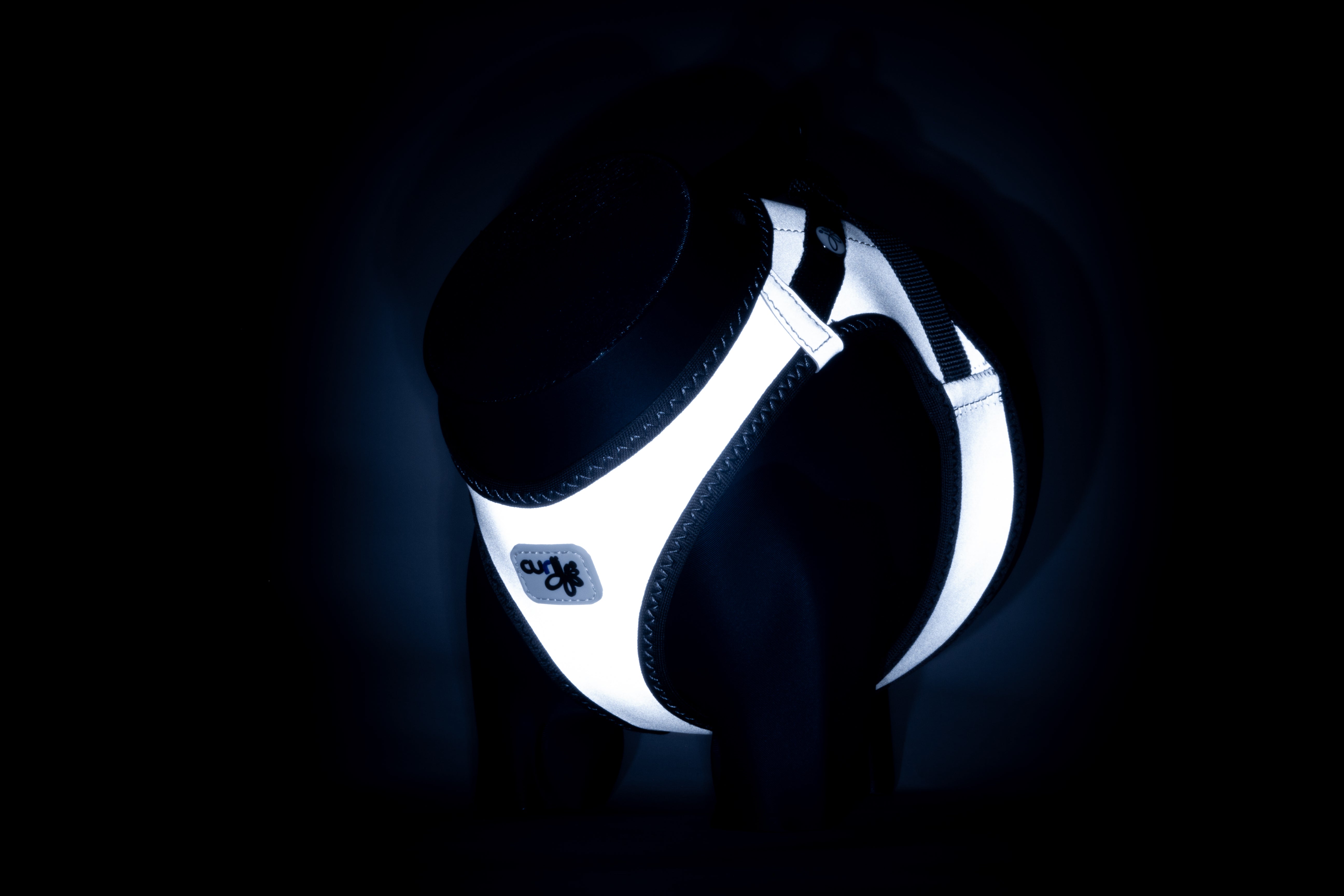 ∙ Ein Trägergewebe, bestehend aus einer Kombination von Baumwolle und PU, ist mit einer zarten Schicht aus Glasstaub, Mikroprismen, versehen. Diese Schicht wird auf das Trägergewebe appliziert und reflektiert bei Bestrahlung durch eine Lichtquelle.