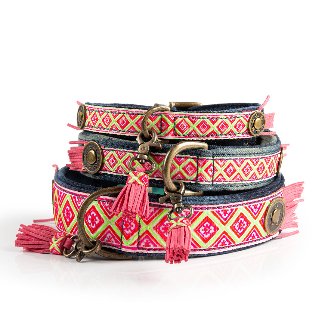 Das coole Sandy Moon aus der Denim Kollektion ist ein cooles Halsband aus solidem Denim-Stoff. Speziell für den Jeans Look für Ihren Hund, mit schönen rosa Details.