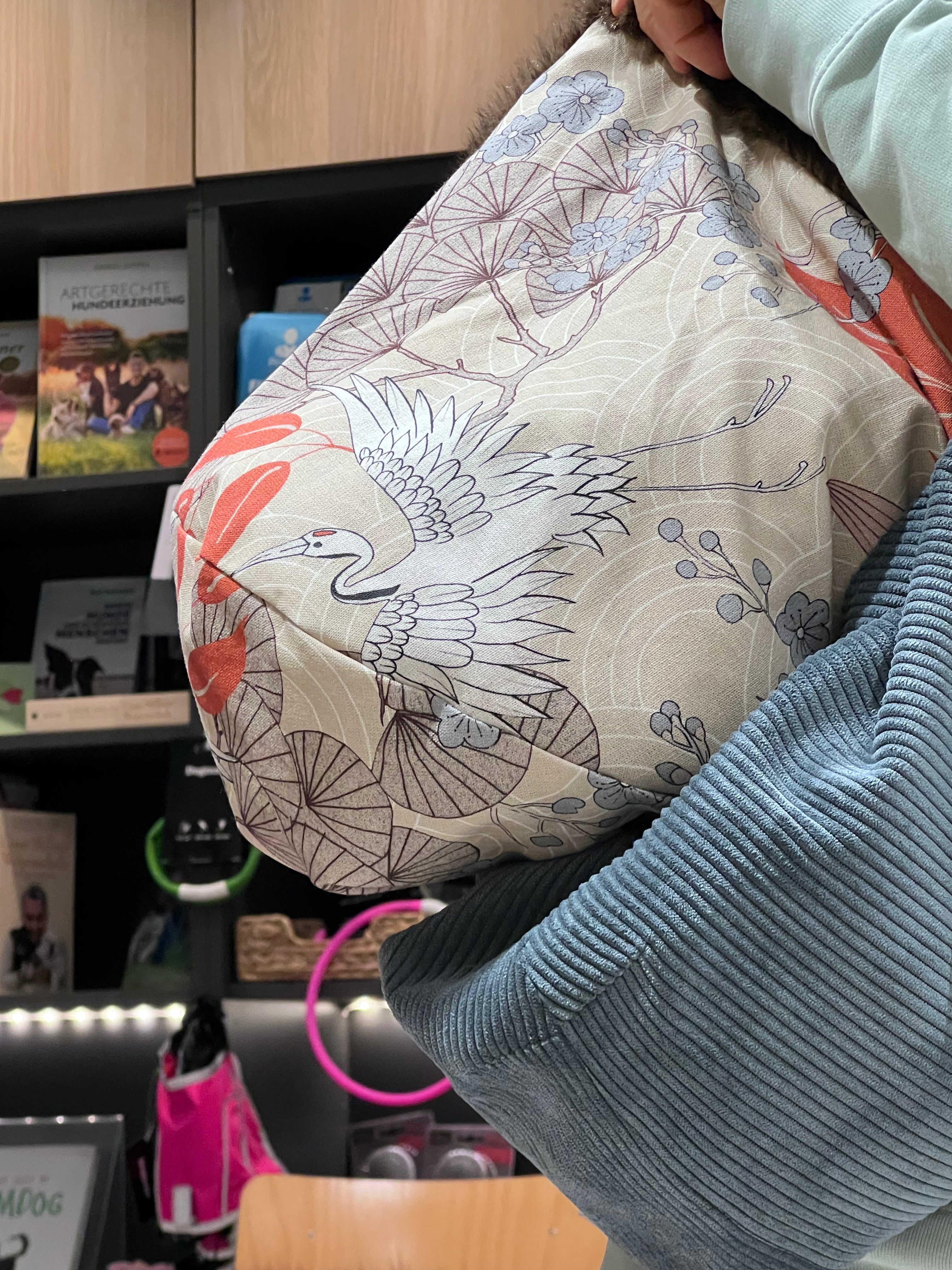 Gleichzeitig kann die Tragetasche im Lokal oder Unterwegs als gemütlicher und warmer Platz verwendet werden.