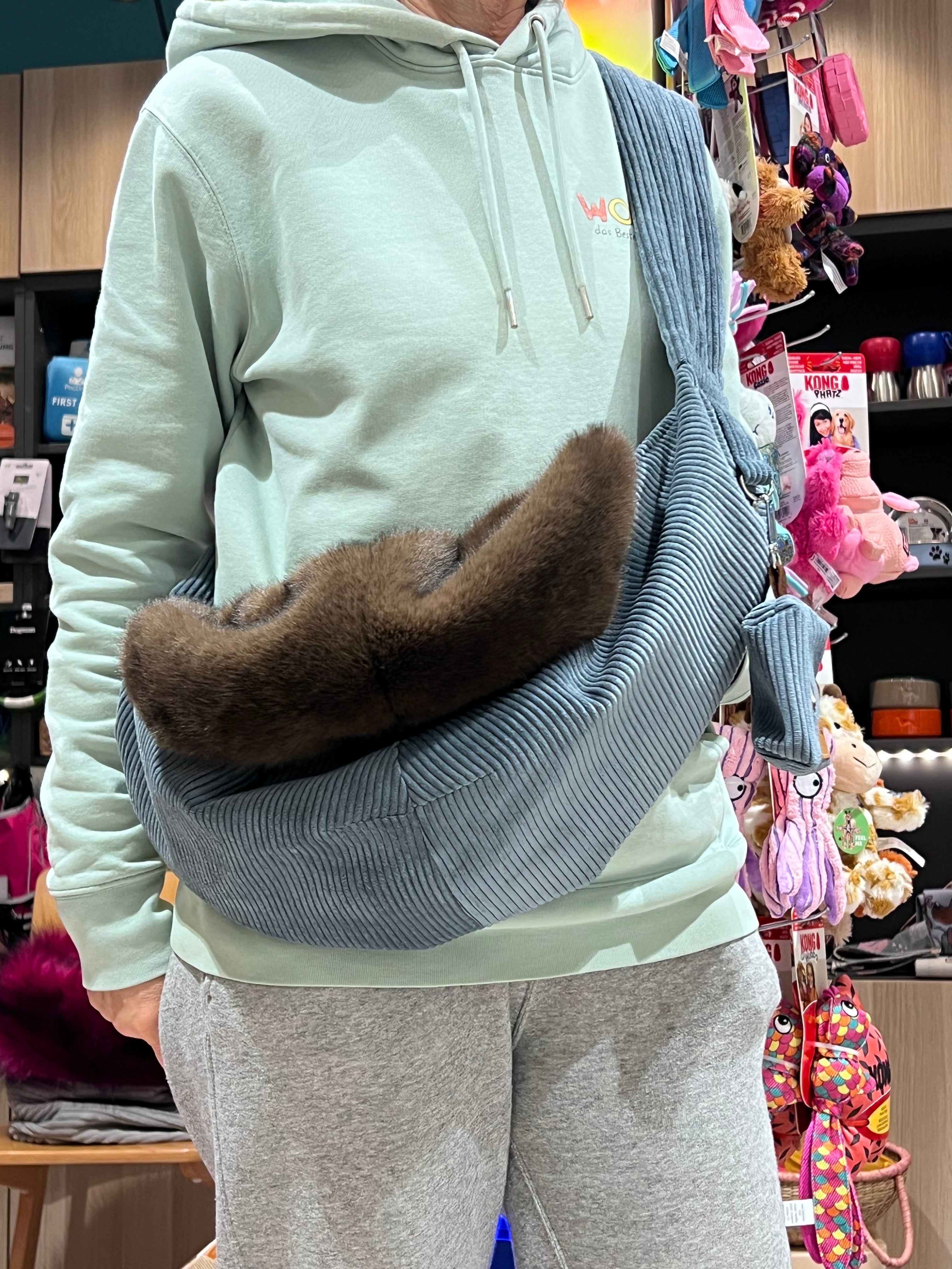 Mit der Crossbag Mini hat man die Hände frei und die Lieblinge sind ganz nah bei ihren Lieblingsmenschen.