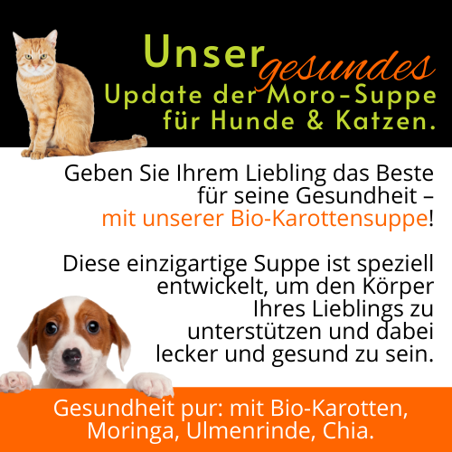 Sollte es Ihrem Liebling langsam besser gehen, empfehlen wir die Suppe ca. 30 Minuten vor einer hochverdaulichen Mahlzeit zu geben. So entfalten sich die Oligasaccharide zum vollständigen Darmschutz.