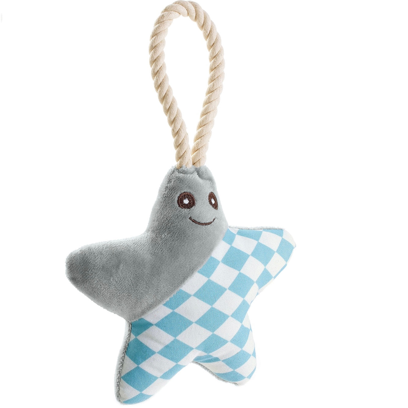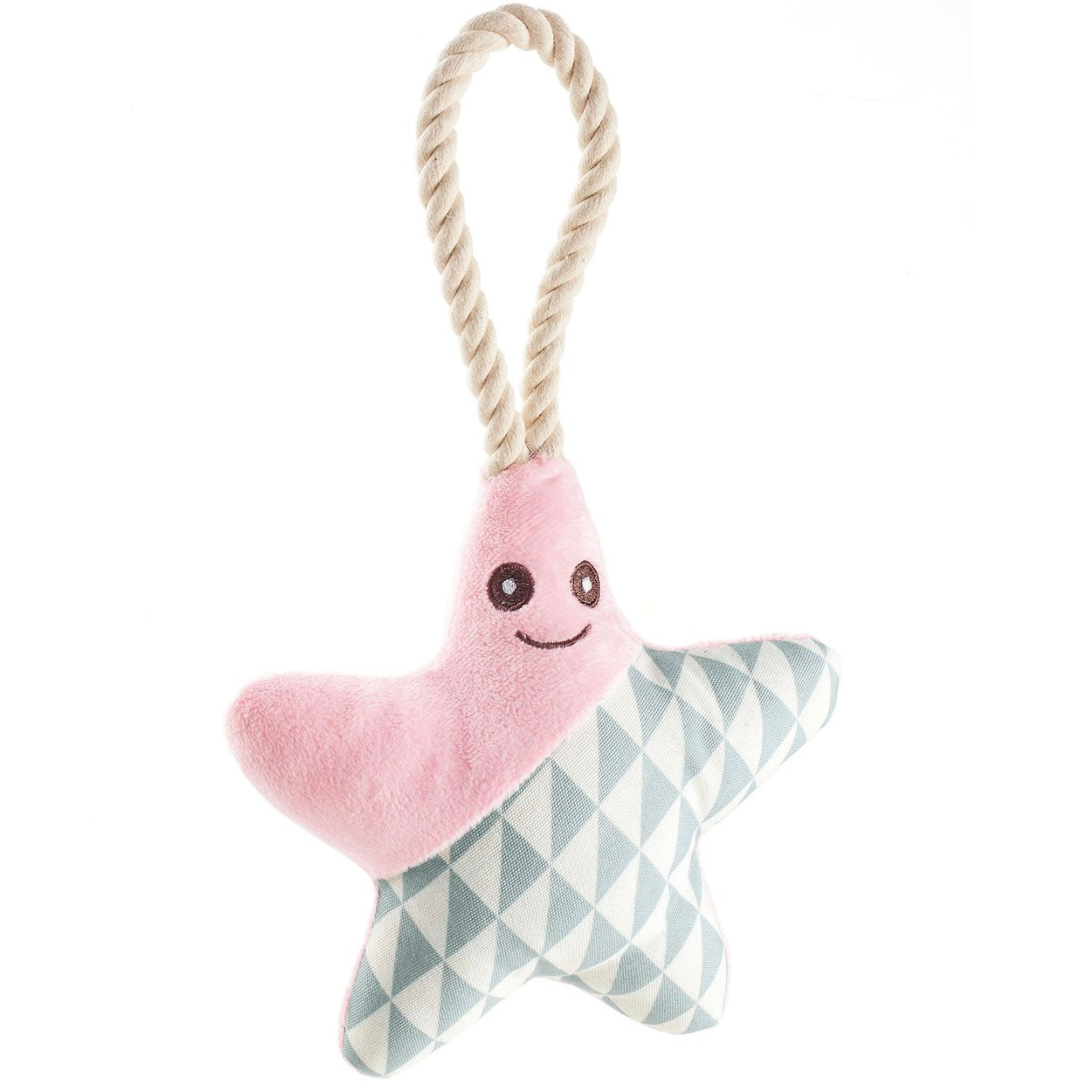 Welpen sind voller Energie und kaum zu bremsen, benötigen aber auch viele kurze Ruhepausen über den Tag verteilt um all die neuen Eindrücke und das Erlebte verarbeiten zu können. Ideal ist es daher, Zuhause mit dem neuen Mitbewohner zu spielen, auch um Stück für Stück eine gute Bindung zu dem quirligen Wesen aufzubauen und zu stärken. Kaum ein Spielzeug eignet sich zum »Kennenlernen« besser als die weichen Kuscheltiere in Knochen- und Sternform der Serie SALIMA. Dank eingenähter Schlinge aus robustem Tau lassen sich die Spielzeuge nach Lust und Laune werfen, und wenn Ihr Vierbeiner das Spielzeug fängt ertönt ein anregendes Quietschen aus dem Inneren. Schon ist die Freude groß! Und das Spiel beginnt von Neuem: Werfen, fangen, »Quietsch« – Hunde sind so einfach glücklich zu machen! Dank der zarten Pastelltöne sprechen die SALIMA-Spielzeuge vor allem Welpenkäufer an, doch auch für Hunde, die den Kinderschuhen bereits entwachsen sind, eignen sich die weichen Kuscheltiere hervorragend. Hinweis: Bitte das Tier beim Spielen nie unbeaufsichtigt lassen. Kein Spielzeug ist unzerstörbar. Um Verletzungen vorzubeugen, sollte das Spielzeug regelmäßig auf Beschädigungen oder lose Teile kontrolliert und gegebenenfalls ersetzt werden.