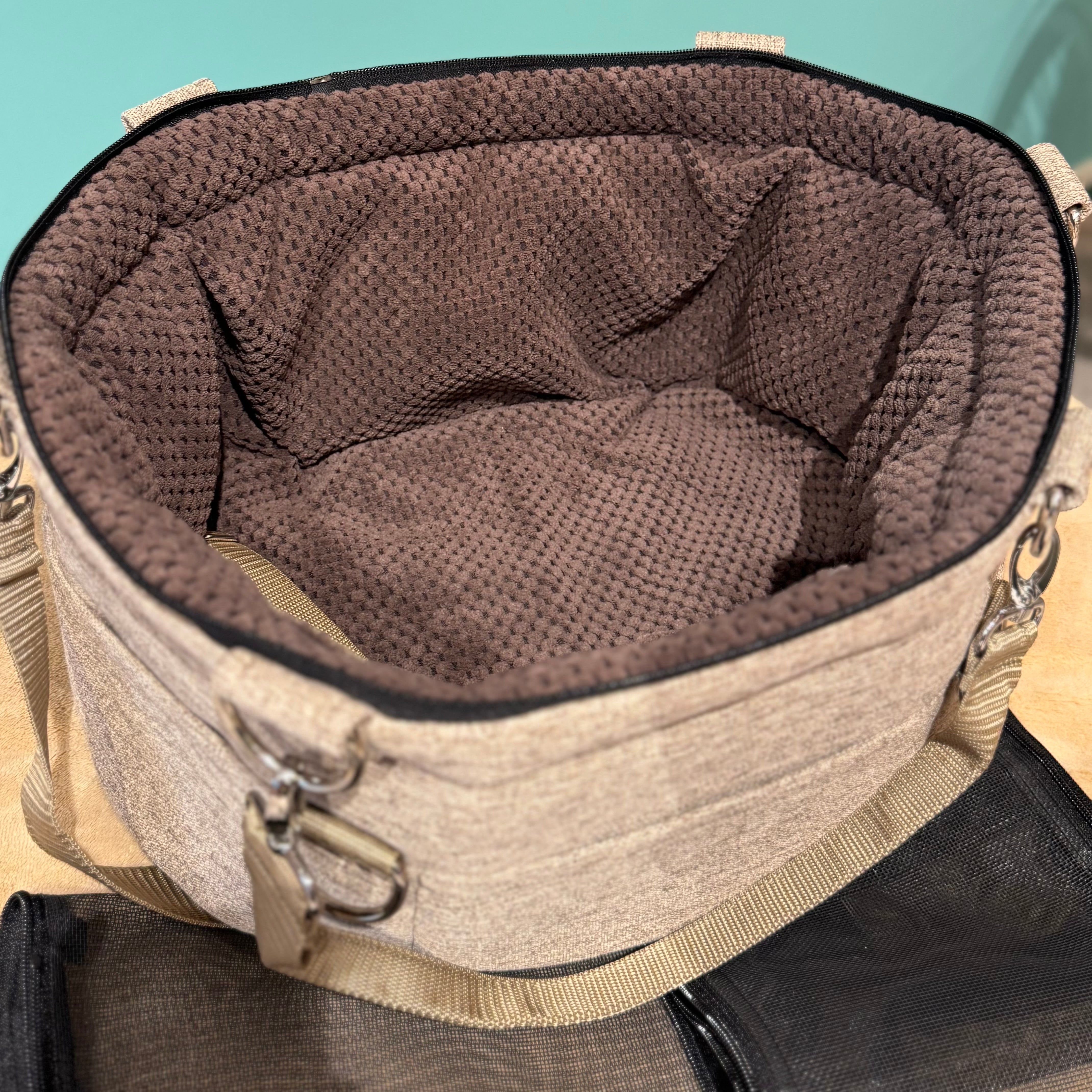 Der kuschelige Innenbereich bietet Hunden ein geschütztes Gefühl und lädt zum Entspannen ein. Die hochwertige Polsterung sorgt dafür, dass auch längere Strecken angenehm bleiben. Außen überzeugt die Tasche mit robusten, edlen Materialien, die dem Alltag mühelos standhalten und gleichzeitig modern aussehen.