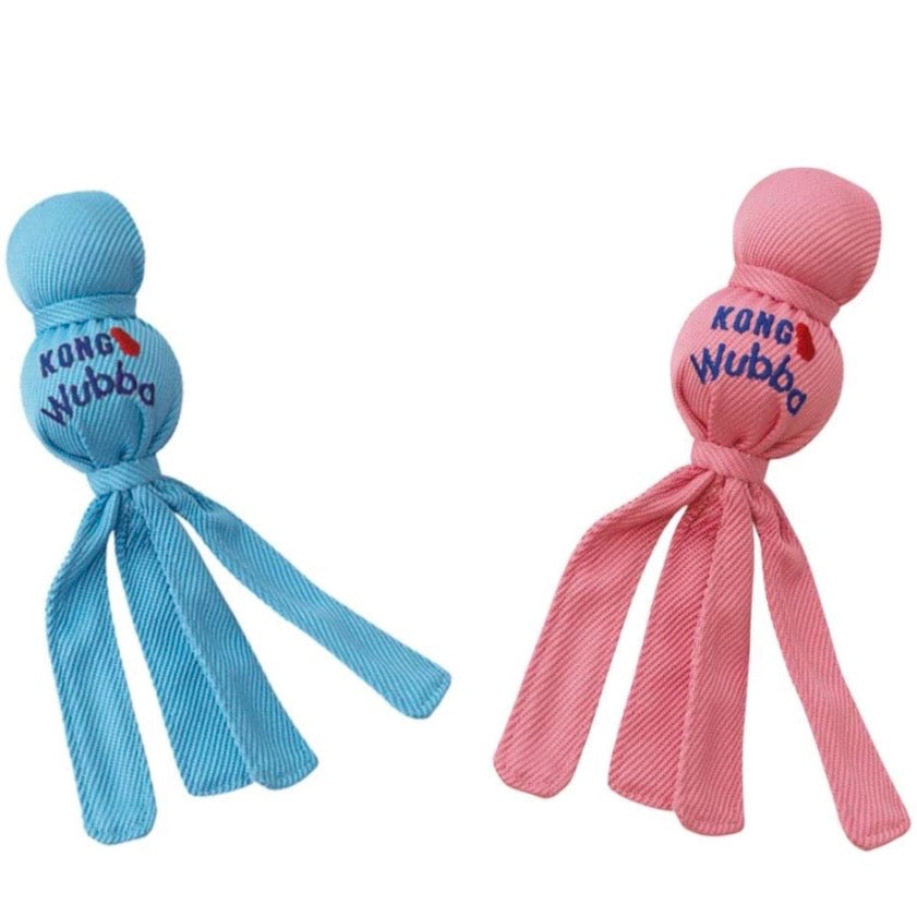Der KONG Puppy Wubba™ ist ein interaktives Spielzeug zum Zerren und Werfen, das sowohl für gemeinsames Spielen als auch zur Selbstbeschäftigung geeignet ist. Seine langen, flauschigen Schwänze regen zum Schütteln und Zerren an und sind ideal für Apportierspiele. Der Bezug aus widerstandsfähigem verstärktem Nylonmaterial und die einzigartigen Ballformen ermöglichen ausgiebigen Spielspaß. Welpen lieben das Quietschen des Puppy Wubba™ und haben unermüdliche Freude daran, seine Schwänze hin und her zu rütteln.